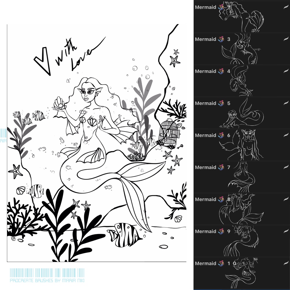 Update to the MERMAID TEXTURE , which includes 30 brushes and 1 color palette to create complete illustration + procreate Timelapse video (using texture brushes).