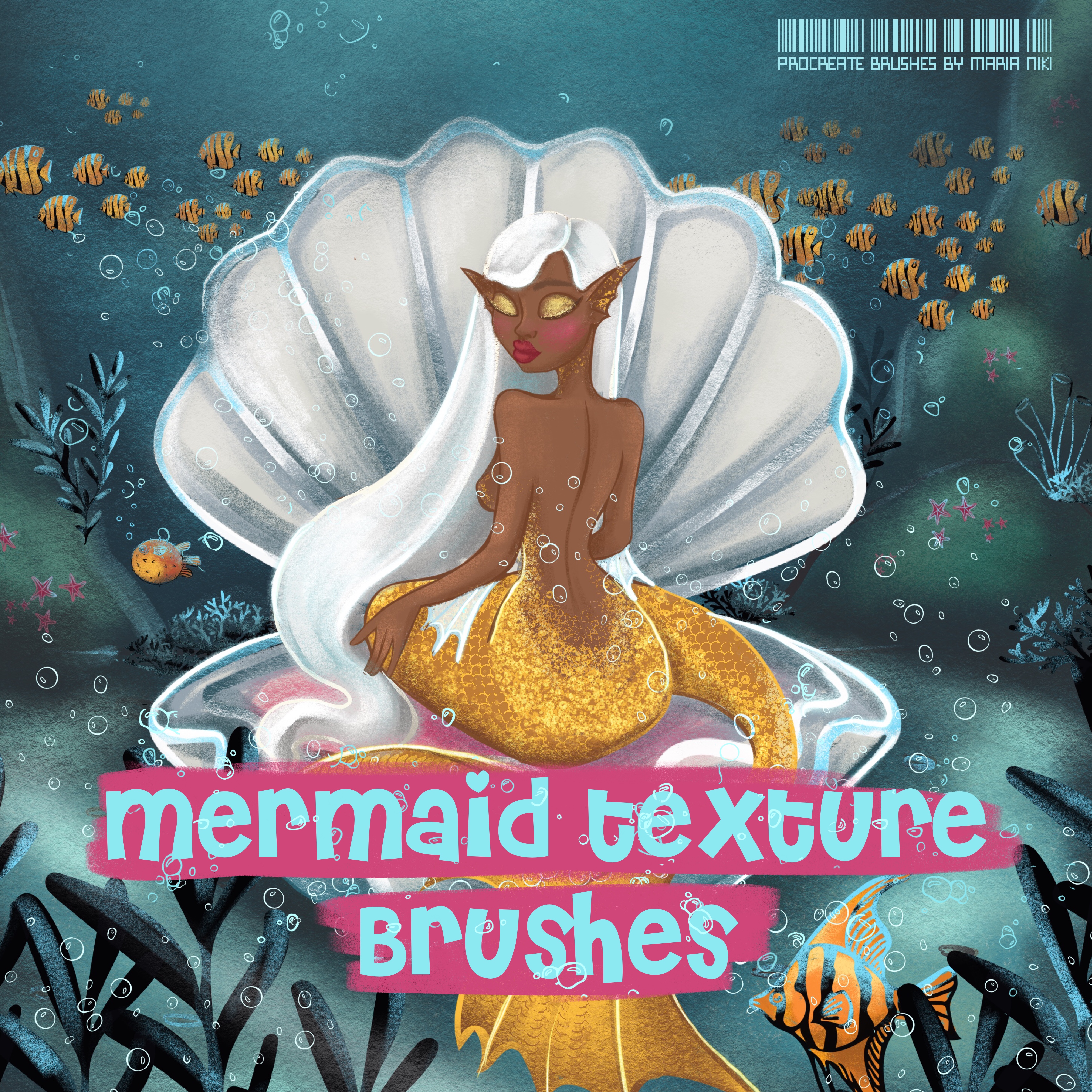 Update to the MERMAID TEXTURE , which includes 30 brushes and 1 color palette to create a complete illustration + procreate Timelapse video (using texture brushes) ⠀⠀⠀